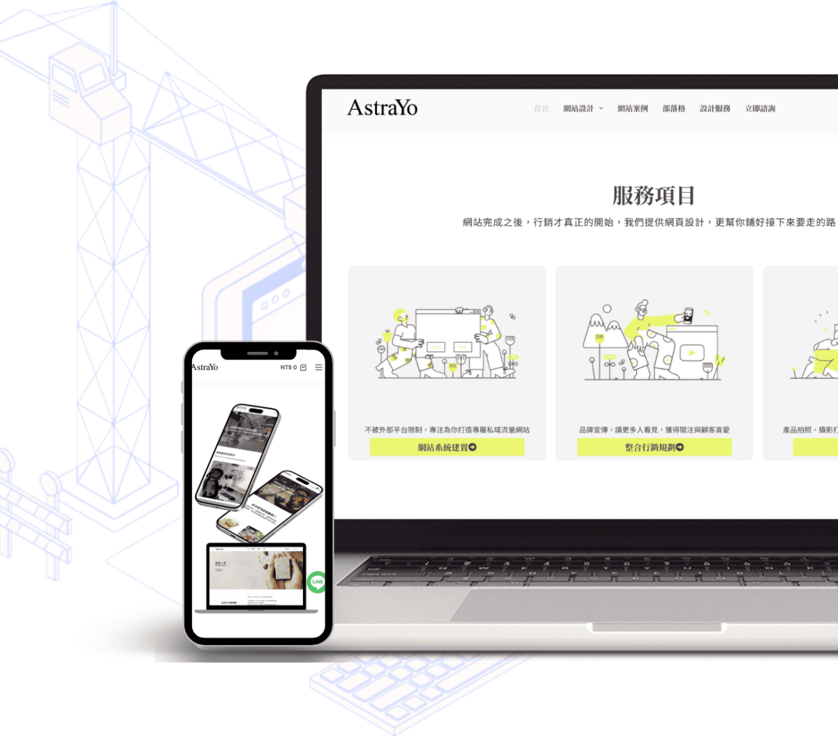 根據品牌需求規劃網站架構、風格、素材和銷售流程,同步建置網站。
